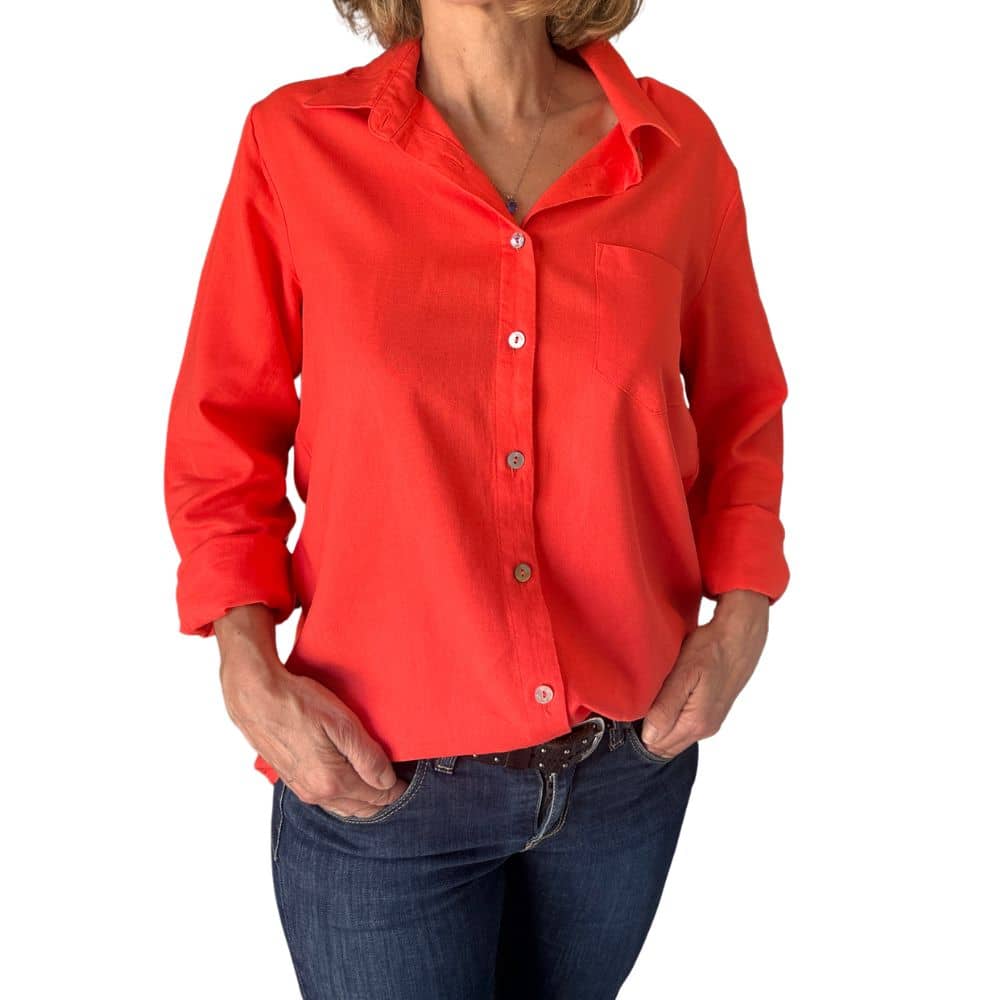 Éclat et Matière : Sa teinte corail apporte une luminosité instantanée à votre tenue. La viscose naturelle vient adoucir la fibre de lin pour un toucher soyeux, très agréable même lors des journées les plus chaudes.