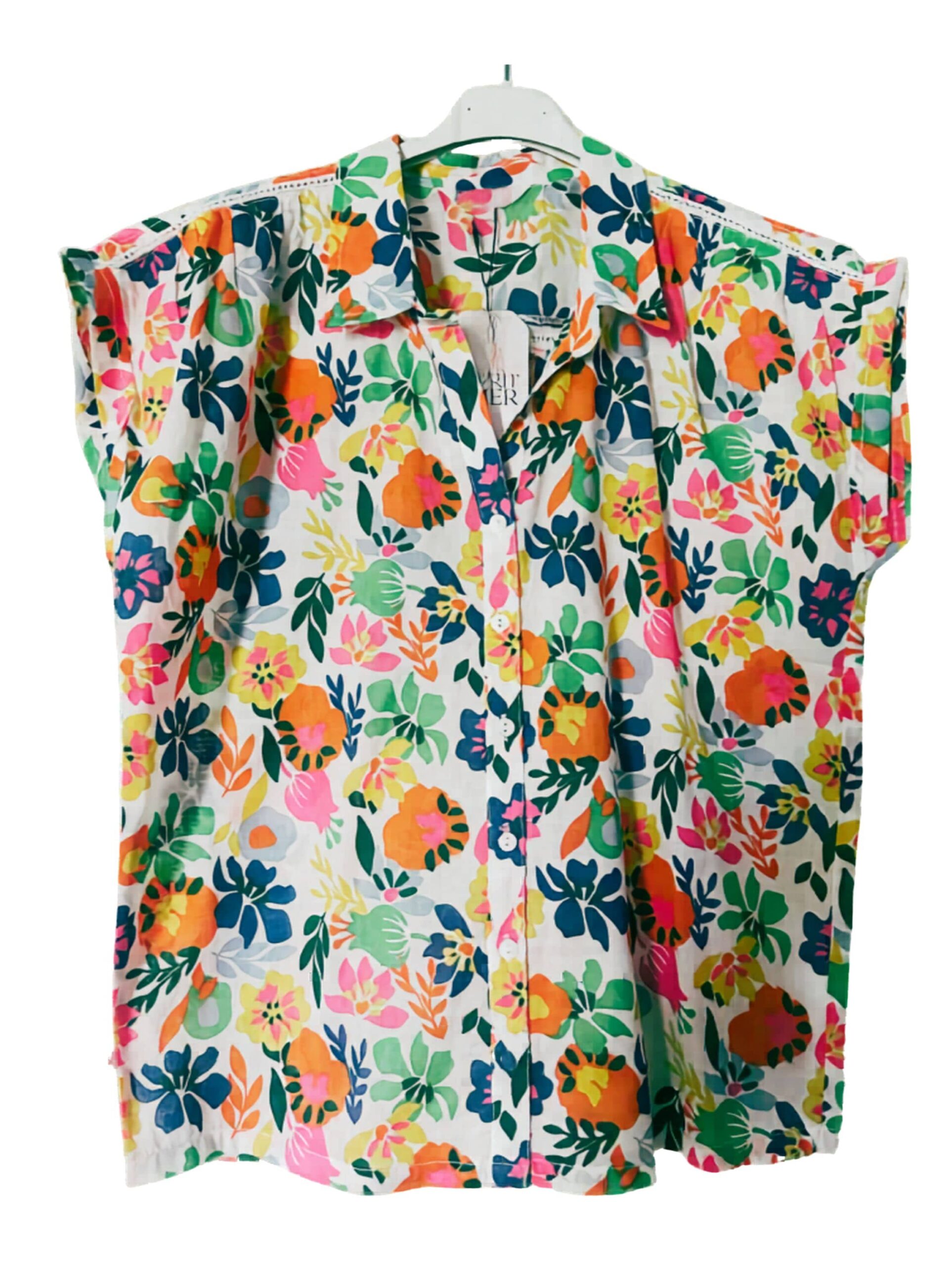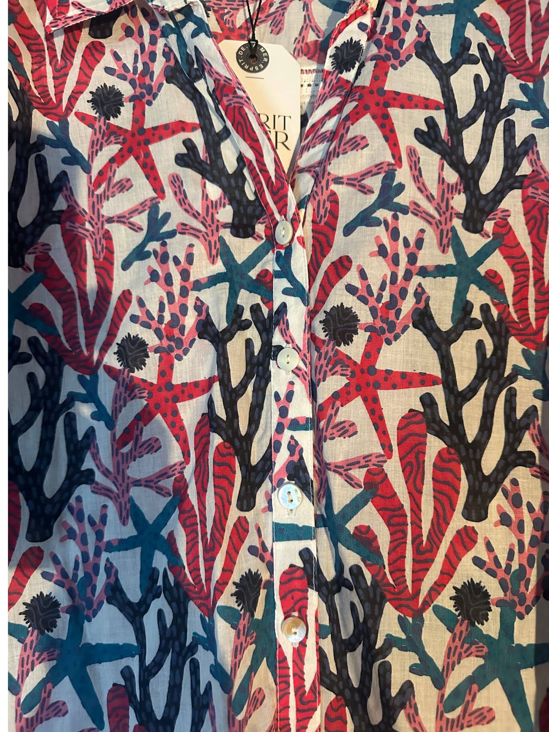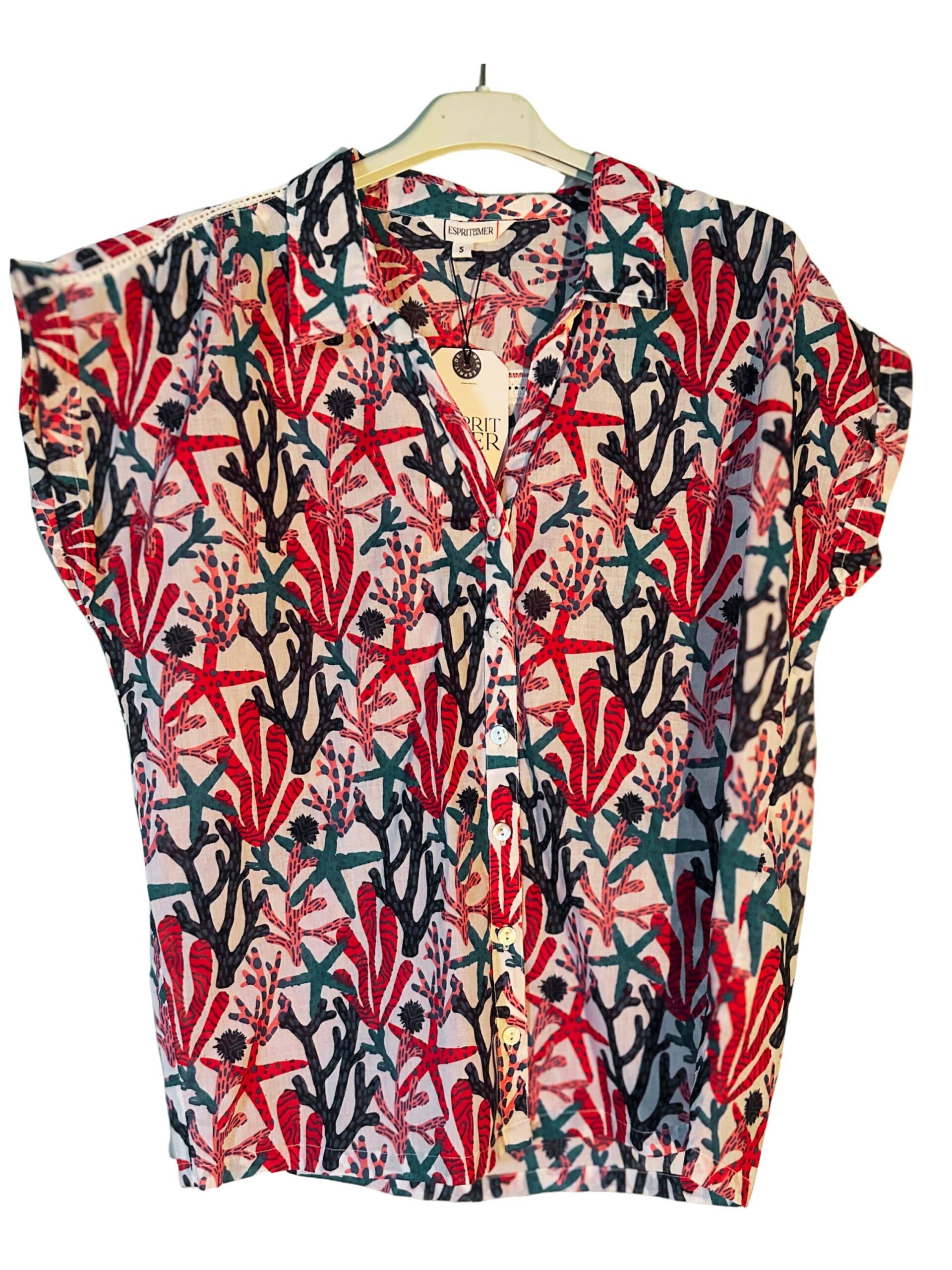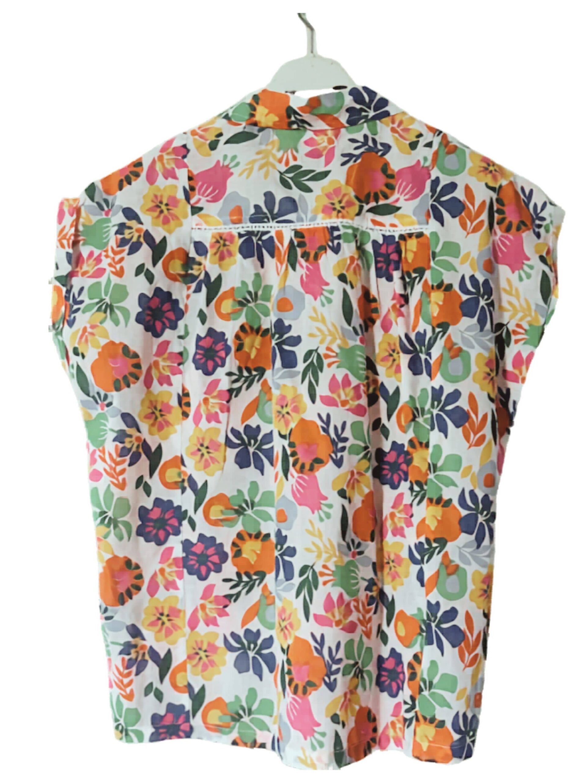 Chemisier Tonya Esprit de la Mer en voile de coton 100%, léger et respirant, idéal pour la saison estivale. Son imprimé floral coloré apporte une touche fraîche et féminine, tandis que son boutonnage sur le devant et sa coupe fluide assurent confort et élégance au quotidien.