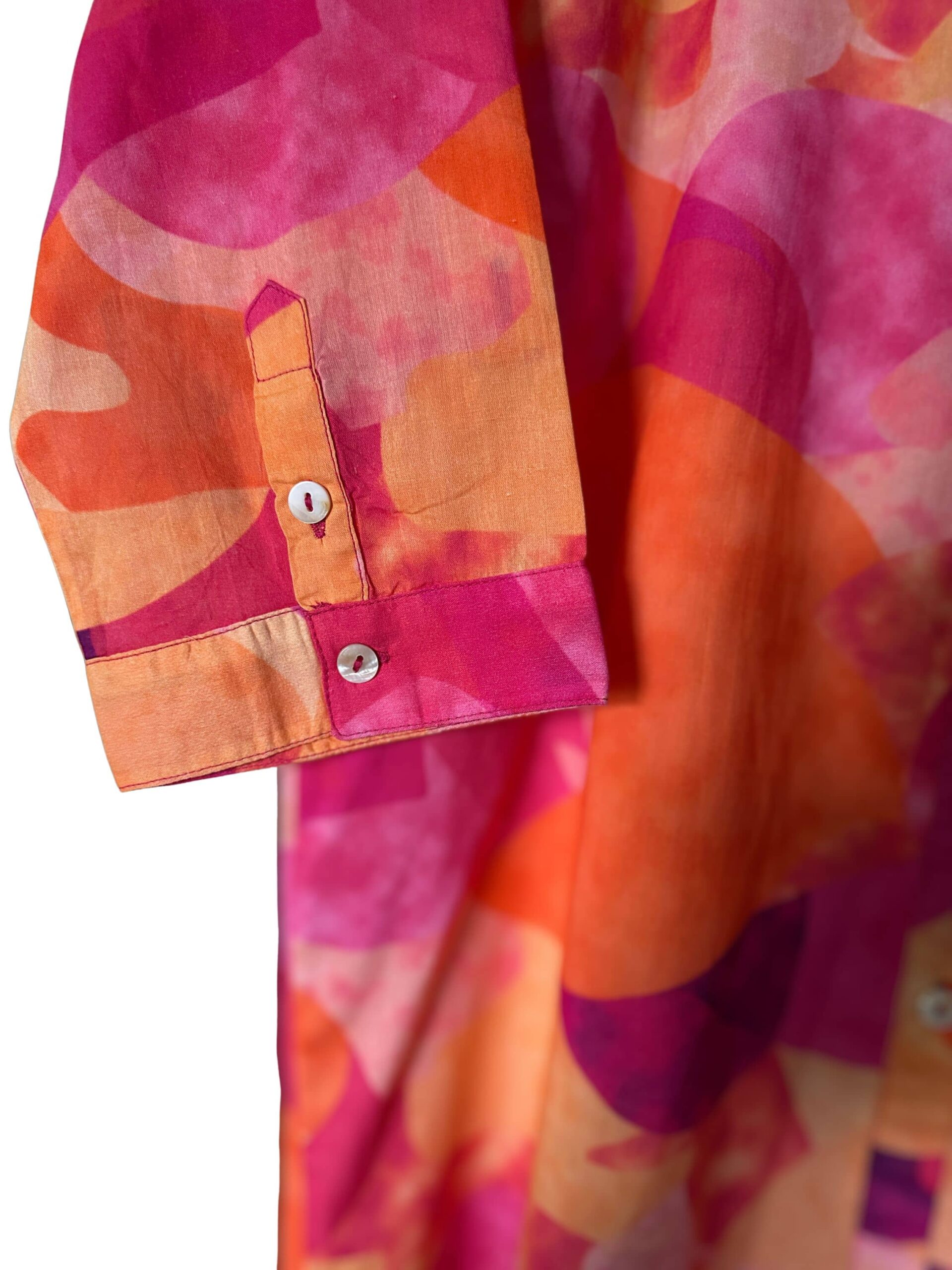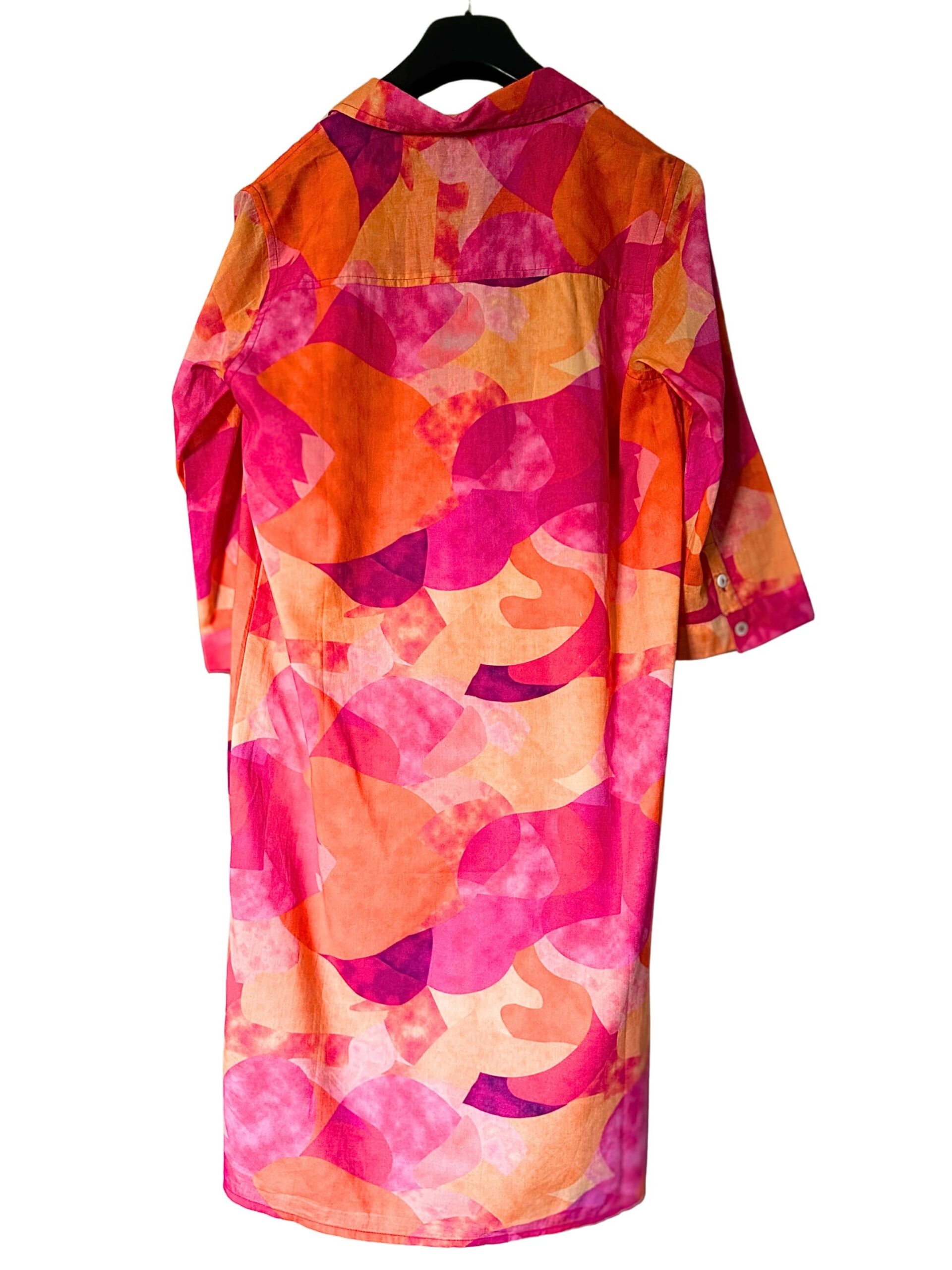 Robe en voile de coton avec doublure intégrée, légère et confortable. Boutonnage devant, manches 3/4 et couleur chatoyante pour un look féminin et élégant.